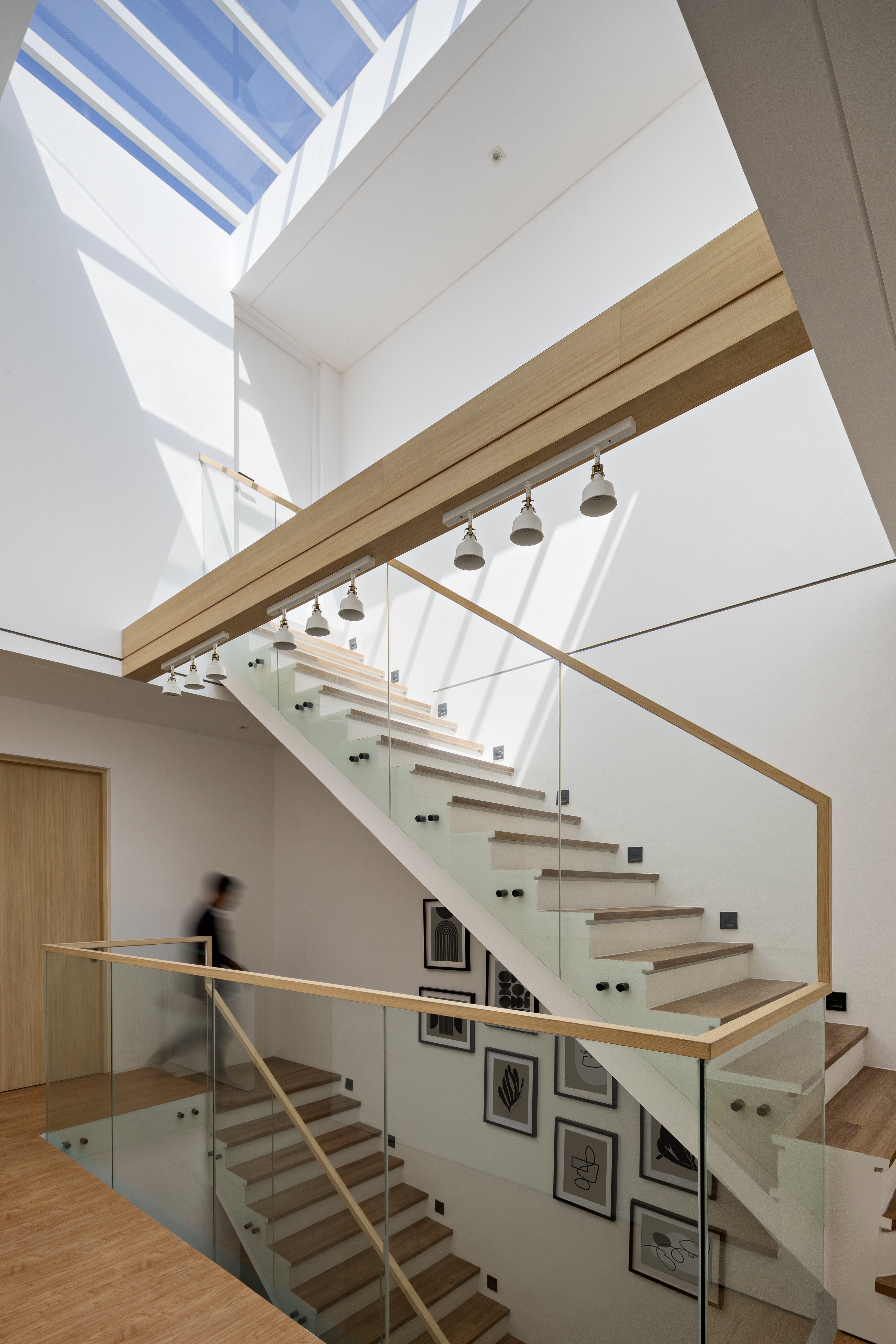 This residential design, situated on a corner lot facing east, emphasizes natural light and openness, creating a bright and airy living environment. Strategically placed skylights allow sunlight to cascade into the interiors throughout the day, enhancing the sense of space and reducing the need for artificial lighting. Generous openings, including large windows and folding glass doors, frame views of the surroundings while promoting cross-ventilation to keep the home cool and comfortable. The eastern orientation takes full advantage of the morning light, creating a warm and inviting atmosphere in key living areas. The design balances privacy with openness by incorporating thoughtful landscaping and adjustable screens, ensuring a seamless blend of functionality, aesthetics, and connection to the outdoors.