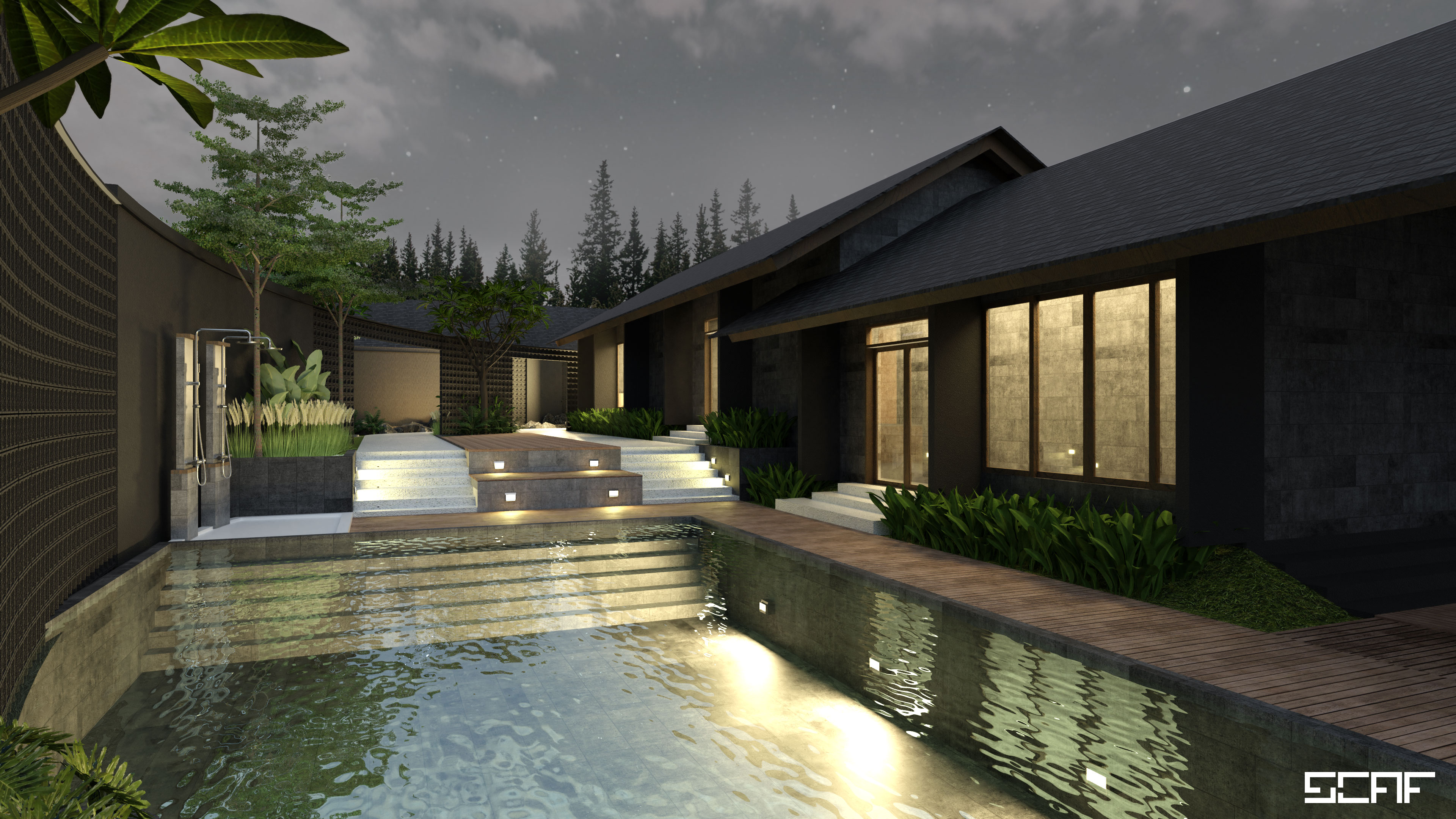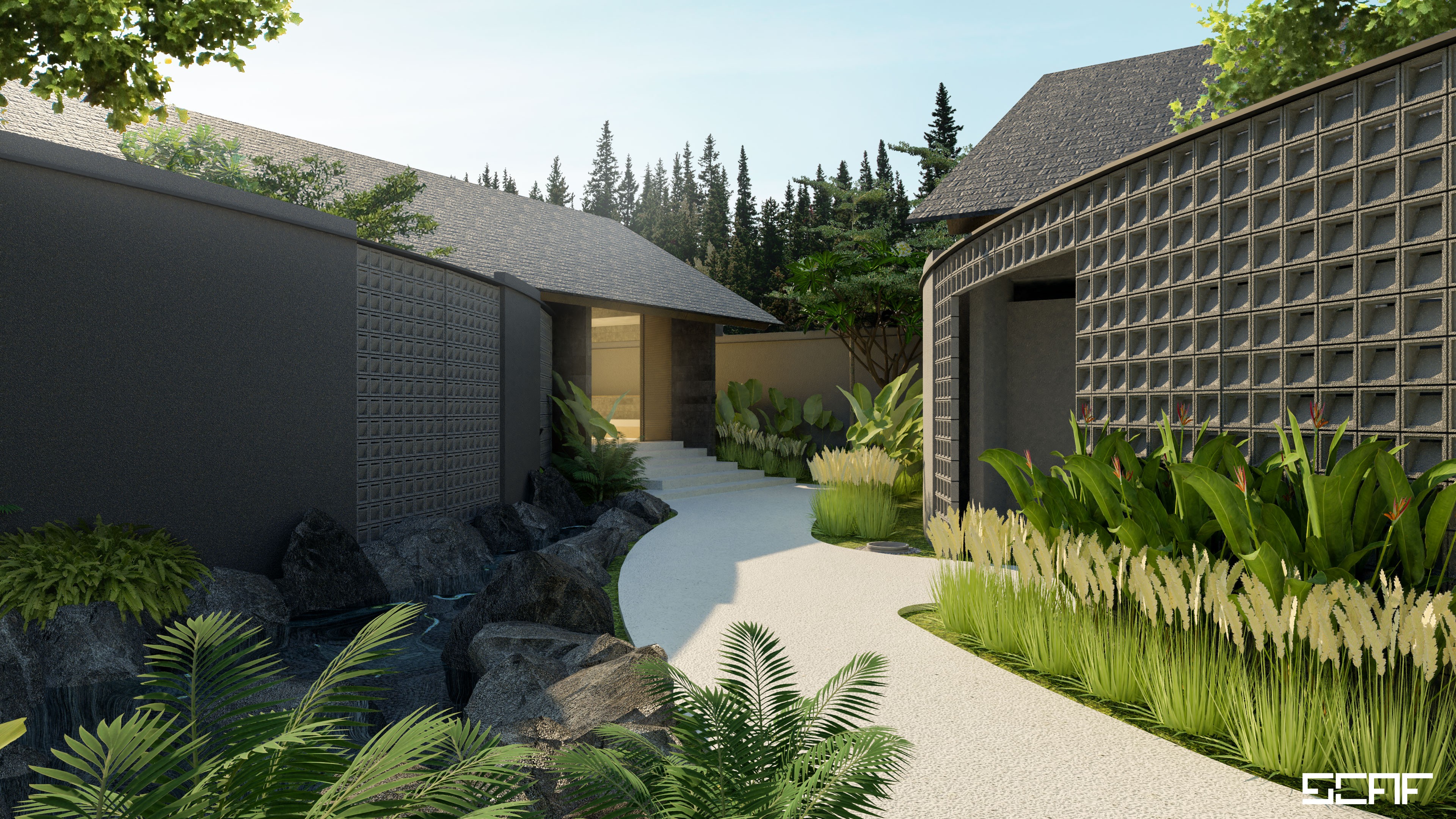 Respecting natural surroundings is considered to be a key point for Rayung Villa Project. Trees and vegetation allow us to set boundaries and constrain the site. Our primary concern to retain its surrounding vegetation is then being translated through this mood image, regarding our belief in the presence of nature in every architectural project. As an architect, the necessity to respect the existing ones will give an added value towards the project itself.